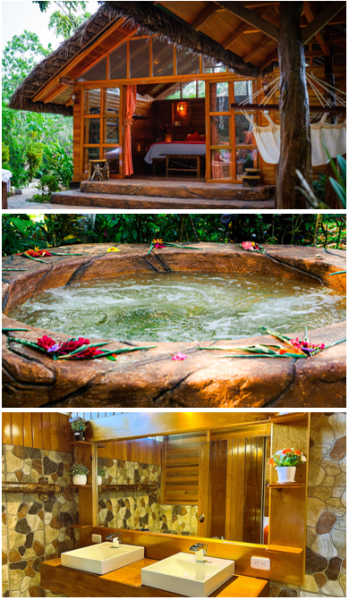 🏡 Luxury cabin This charming cabin has been carefully designed to immerse you completely in the tropical jungle. With panoramic windows from floor to ceiling, it offers an unparalleled view of the forest from any corner: whether from the comfort of your bed, while relaxing in the hammock, or enjoying an outdoor jacuzzi in your own lounge area.